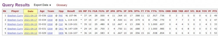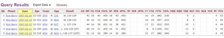 In February 1967, Rick Barry scored 230 points in 5 games.