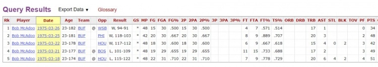 In March 1975, McAdoo scored 224 points in 5 consecutive games.