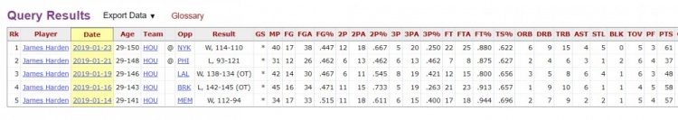 200 points is nothing. The total points in 5 consecutive games are incredible: Marshal 351, Kobe 268, Harden 261