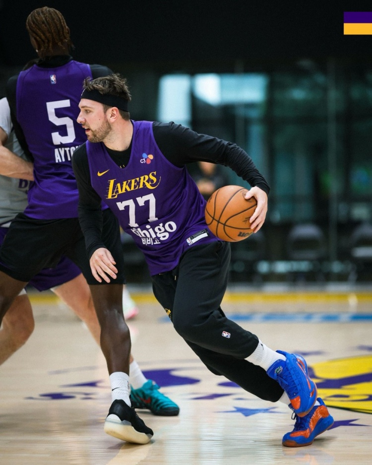 Today, the Lakers’ official Twitter posted a set of team training photos.