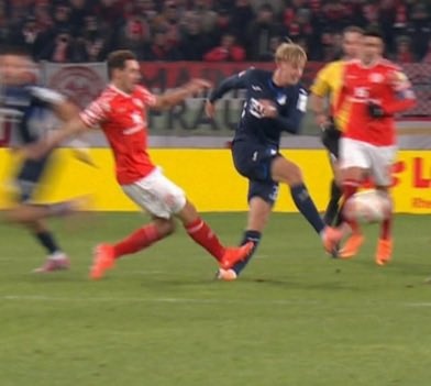 In this campaign, Mainz defender Dominic Cole made a reckless move and was sent off by the referee for stamping on the opponent's ankle.