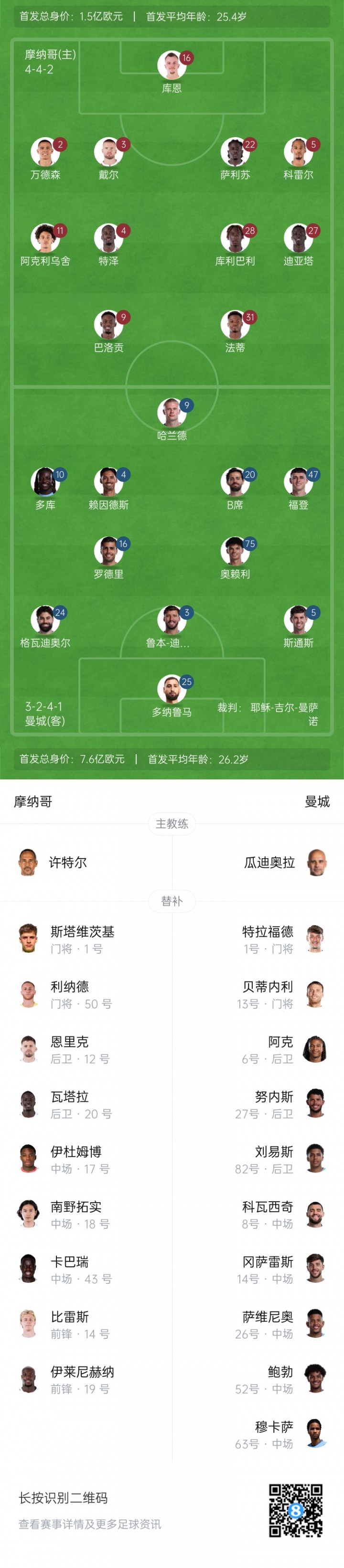 Manchester City starts away against Monaco: Haaland and Rodri start, Foden and Stones play
