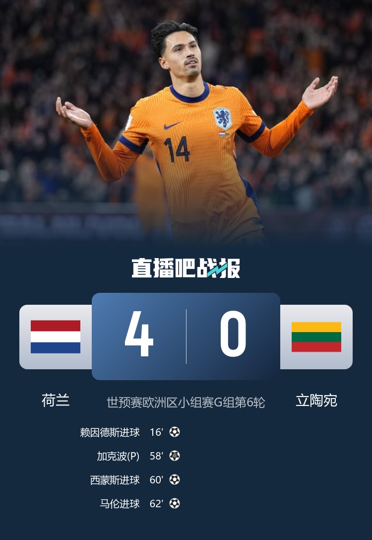 In the 6th round of Group G of the European Group Stage of the World Cup Qualifiers, the Netherlands 4-0 Lithuania. Reinders and Gakpo passed the ball and scored.